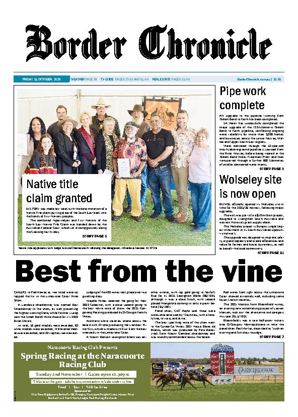 Border Chronicle – 31st October 2025 Subscribe or Login to see the rest of the content. Username Password * Remember Me Forgot Password News Fishing competition called off in city 30/10/2025 Mount Gambier/Berrin fishers have missed out on a the chance to take part in a statewide fishing competition. RecFish SA recently launched Let's Go... Last chance to enter 30/10/2025 If you have a knack for knitting, or a baking bug, make sure to get your entries in for the Millicent Show. But be... Showtime fun comes to Millicent 30/10/2025 The Millicent Show is just around the corner and the finishing touches are being completed. The committee has been working tirelessly to put on...