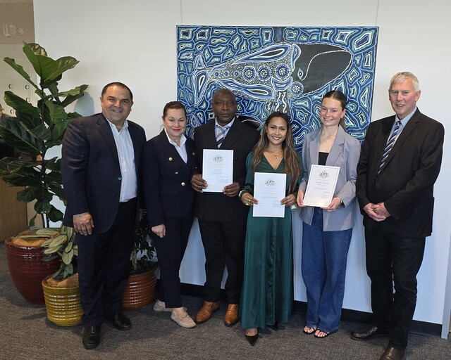 Welcoming new citizens 02/10/2025 FacebookTwitterEmail Tony Pasin and Rebekah Rosser, with new citizens Daniel Magura, Emelyn Delos Santos and Stephanie Jagger with mayor Des Noll. (Supplied) WATTLE Range Council celebrated Australian Citizenship Day on September 17 with a citizenship ceremony for three conferees of council’s newest […] Subscribe or Login to see the rest of the content. Username Password * Remember Me Forgot Password