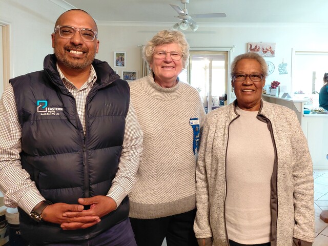 Padthaway Women in Agriculture and Business branch meeting guest speaker Dominic Armoogum with president, Beth Gale and his mother, Suzette Armoogum. (Supplied)