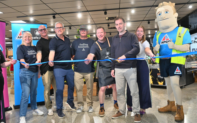 Present at the official Mount Gambier/Berrin APCO ribbon cutting were APCO chief financial officer Fiona Rowan, Retail Operations head Karl Wilson, co-owners Robert and Peter Anderson, former MasterChef semi-finalist Tim Bone, Mount Gambier deputy mayor Joh Lynagh, Sales and Marketing head Kellie Struth, and APCO Joe.