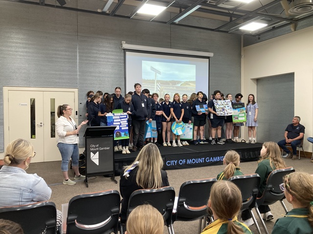 Educators and students presented their findings in the importance of the Limestone Coast's water systems through a presentation to a panel of experts during the LC Landscape Board's 'Water in our Landscape' expo. (Supplied).