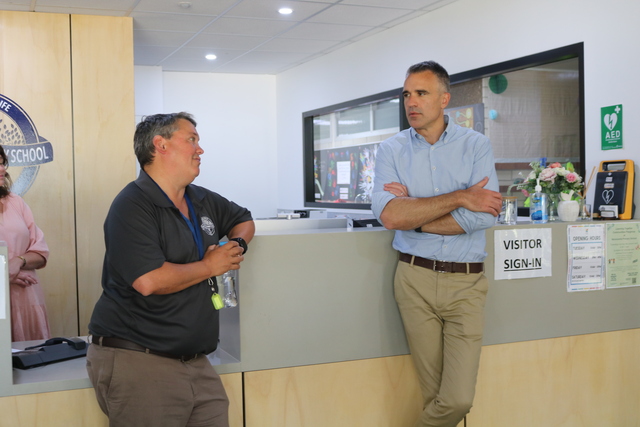 Naracoorte Primary School principal Paul Harmer met with Premier Peter Malinauskas ahead of the reopening of the Naracoorte Outside School Hours Care. (Elisabeth Champion 527489)